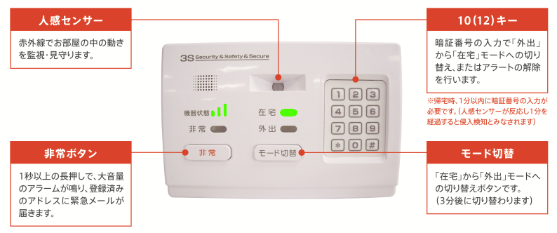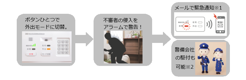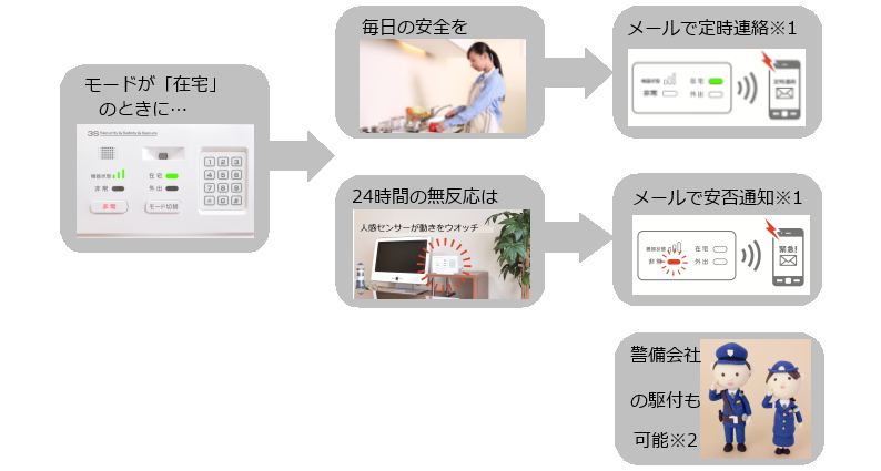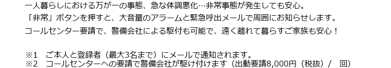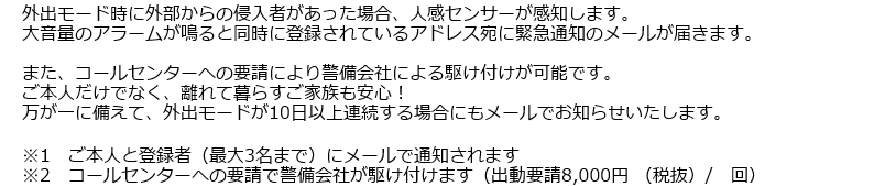 ■当サービスは基本利用約款に定める「在室時の安否確認」「外出時の異常侵入検知」「非常時の連絡」のみの使用を想定しています。それ以外で生じた損害について、当社は法的責任その他一切の責を負いません。