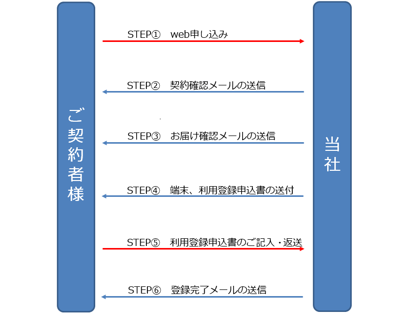 利用開始は利用登録申込書が当社に到着した日(STEP⑤)からになります。
